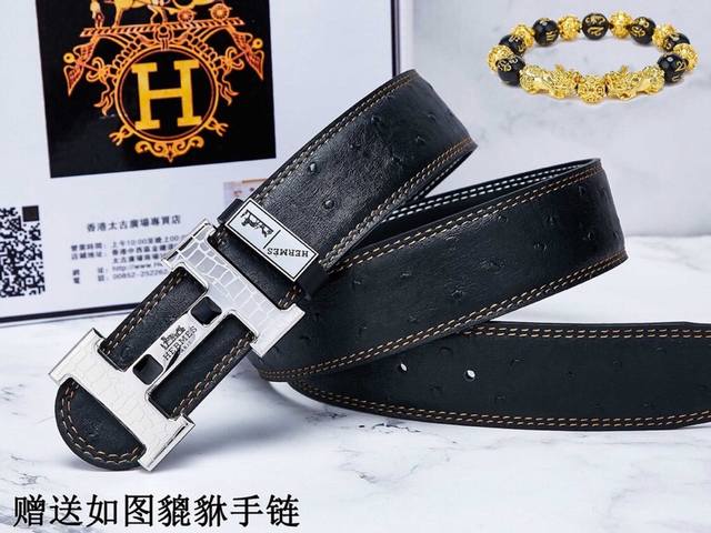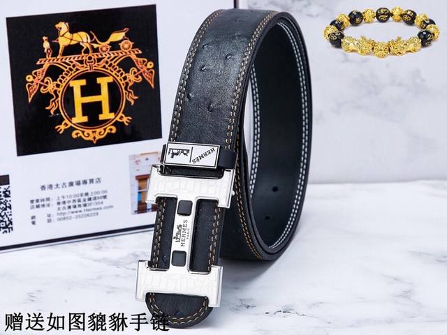 皮带:爱玛仕.Her...原单 腰带:百分百头层牛皮,保证真皮。24K纯钢扣双面可用专柜同等质量, 送人自用首选 包装: 请认准如图专柜包装,赠送打孔器,银联发