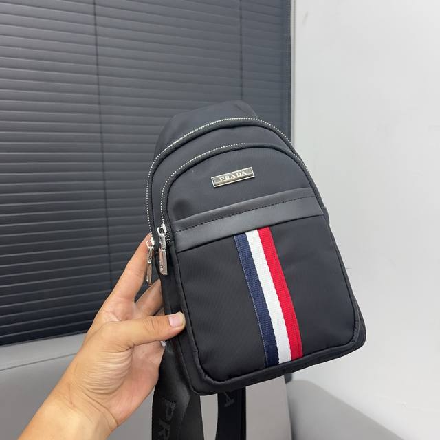 Prada-普拉达最新款男士胸包采用防水布料制作 手感超赞 版型超正 做工精致 细节完美 时尚休闲百搭...