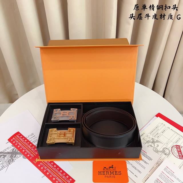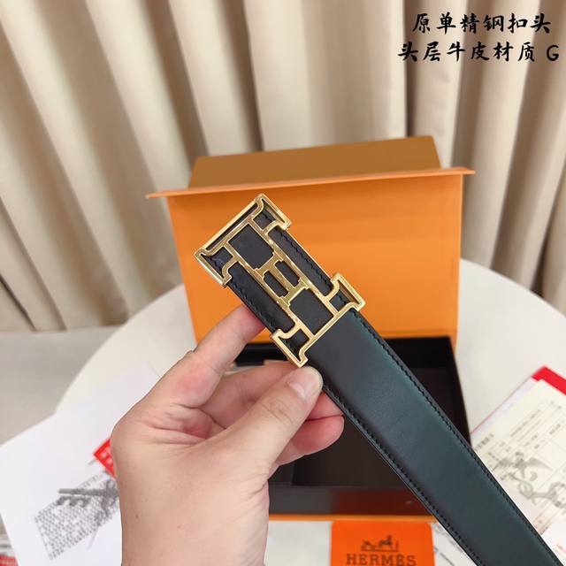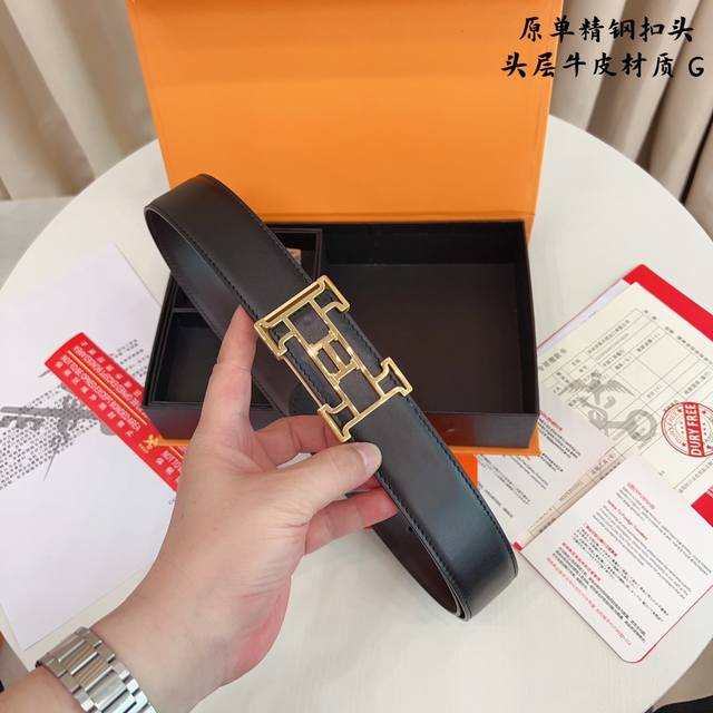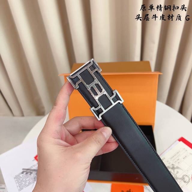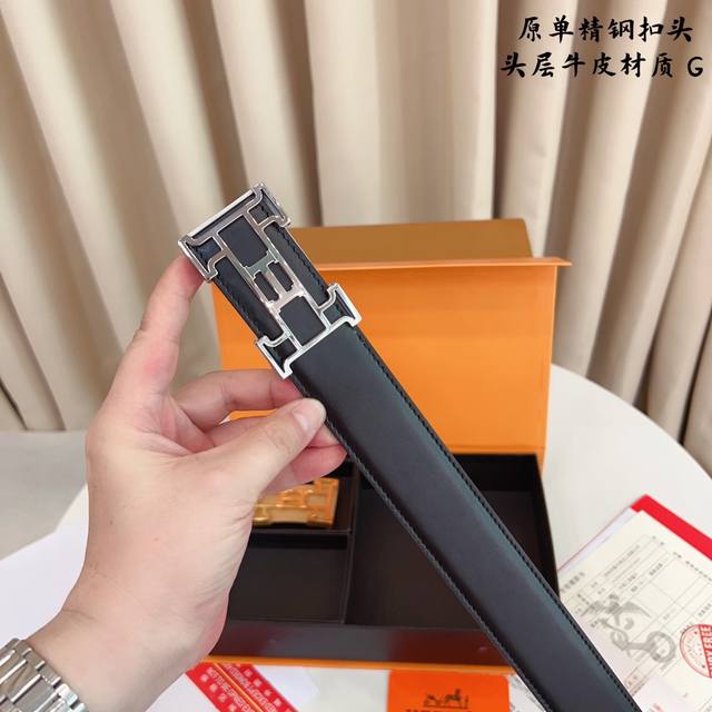 ①带①扣 ①带②扣 原单钢扣版爱马h家 打孔 正版开模 此款腰带双面采用原厂牛皮带身,精密电镀标志性纯钢搭扣 对版专柜。3.8Cm 如需木盒40