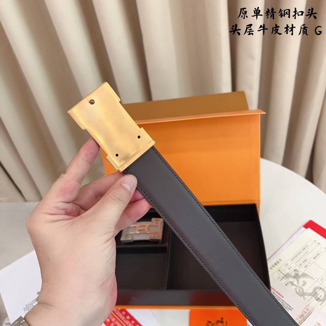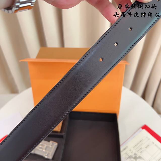 原单钢扣版爱马h家 打孔 正版开模 此款腰带双面采用原厂牛皮带身,精密电镀标志性纯钢搭扣 对版专柜。3.8Cm 如需木盒40