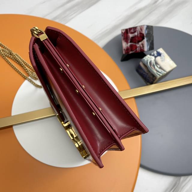 顶级进口手搓纹牛皮链条包,百分百小牛皮,纹路清晰的牛皮路彰显品味,台湾进口青铜五金,一个平口袋,一个开叉口袋,一个拉链口袋,超级特别的y形夹锁扣,这个设计我给满分 时尚且个性十足!魅力四射!牛皮搭配酒红色损耗极大,成本极高!