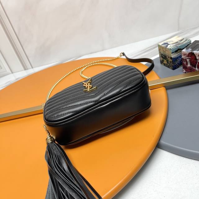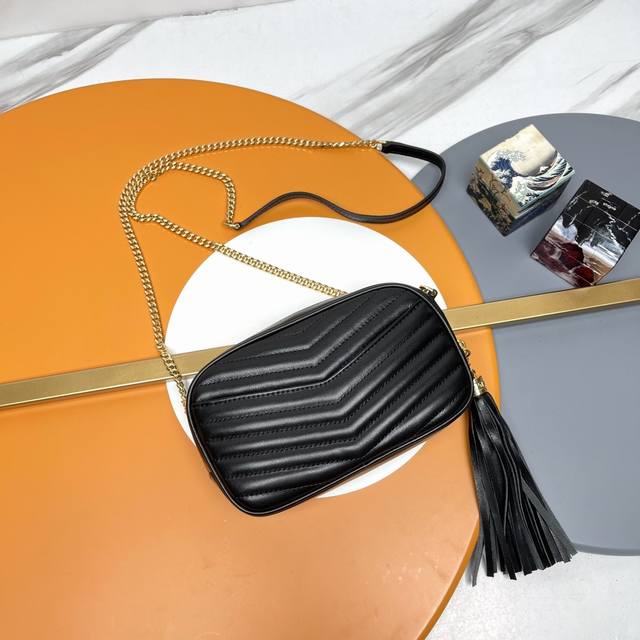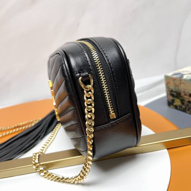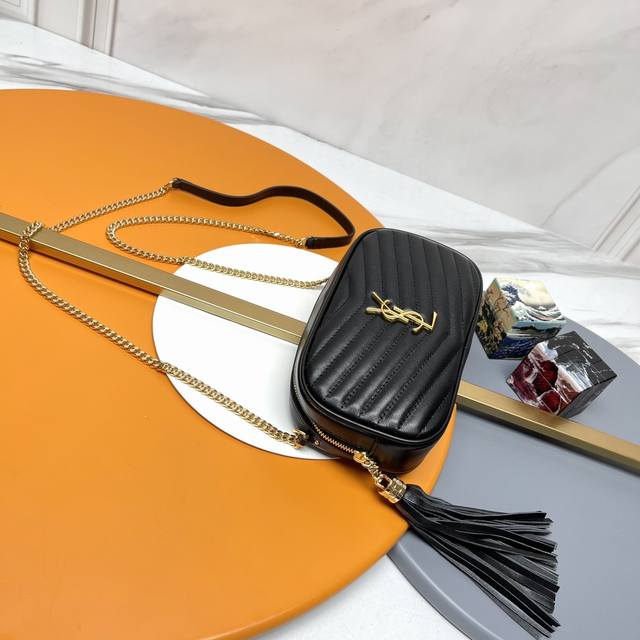 / 黑色 金扣+平纹lou Mini Bag顶级进口牛皮相机包,香港购入zp开模打版,做到一模一样!非常精致!搭配时尚流苏挂饰!里外全皮,包内有卡槽位!非常实用大气