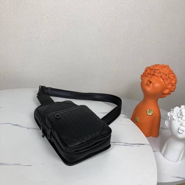 Bv最新款男士胸包原单品质官网同步采用顶级打腊牛皮手感超赞专柜原装五金独特的设计风格完美至极细节做工精致大气中有内涵高端上档次高品质型号:821#,颜色:黑色,尺寸:35 18 6Cm