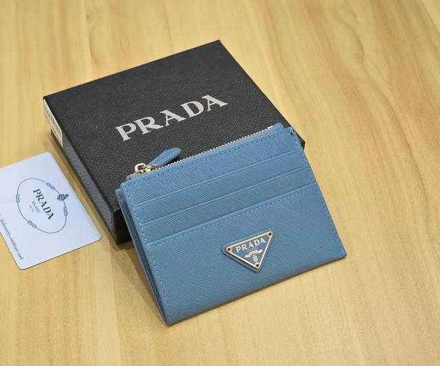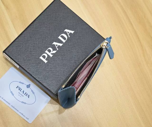 / 颜色 黑 粉 蓝尺寸 9X5普拉达十字纹纯皮卡包 超级自留。卡包钱包两用特别实用