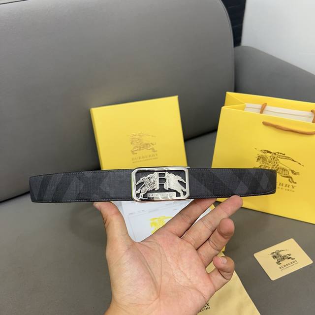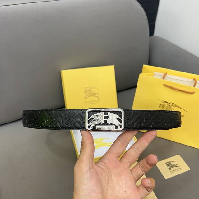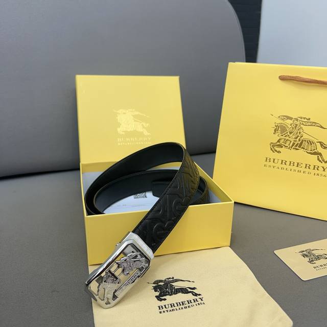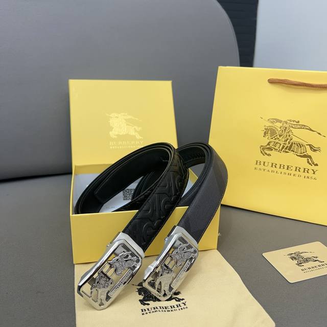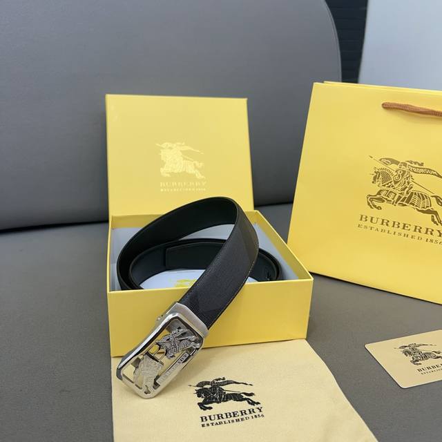 Burberry 巴宝莉 钢扣牛皮腰带 男士经典款皮带 多色可选 时装搭配必备款 优质扣头 采用原厂牛皮带身 高品质全套包装 礼盒 礼袋 小票