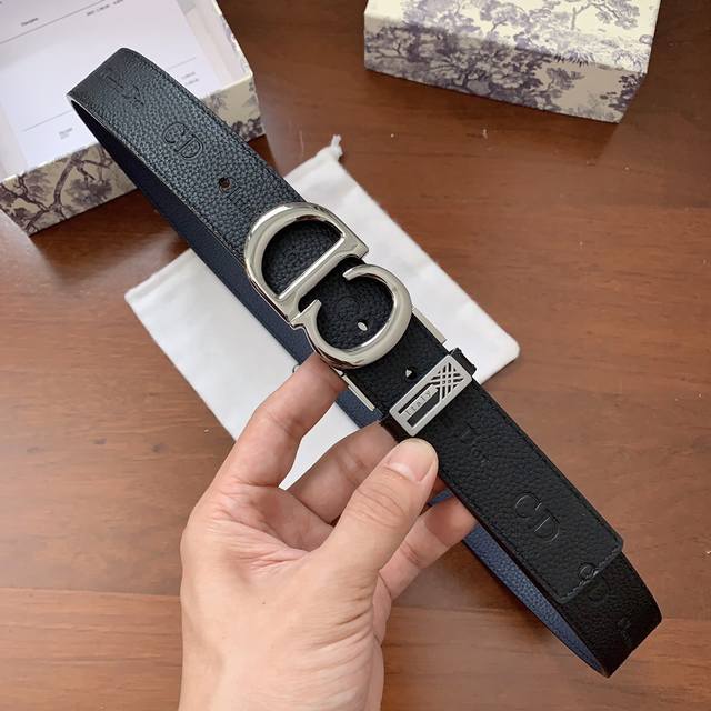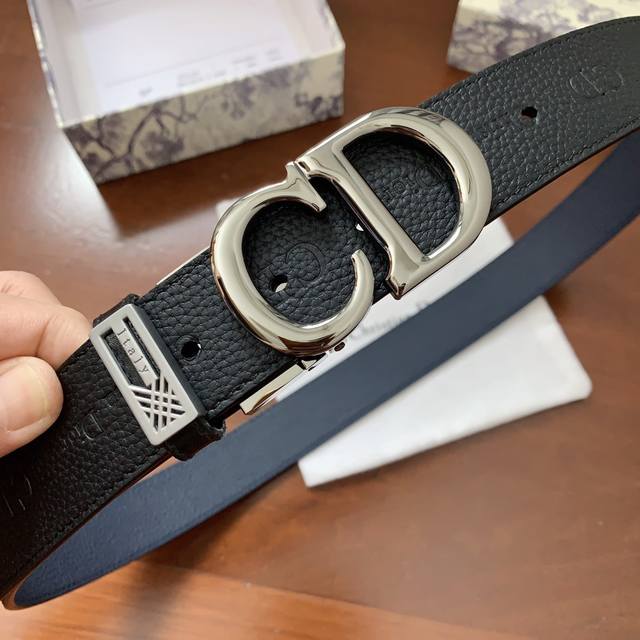 Cd迪奥经典字母款式系列,官网同步,配送专柜正版包装,深度腐蚀logo,双面进口头层牛皮荔枝纹定制,看纹路看做工,皮质保真,宽度3.5 Cm 高清实拍大图