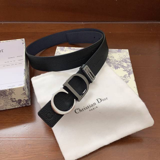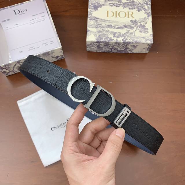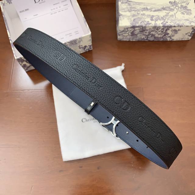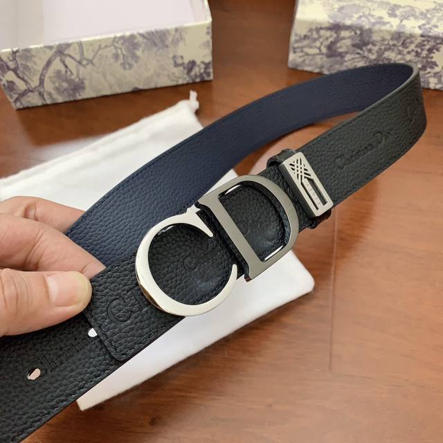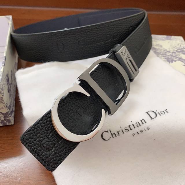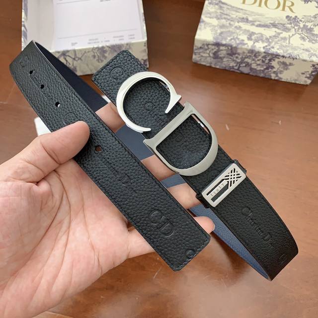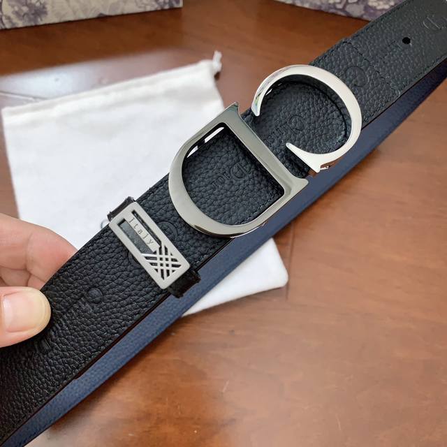 Cd迪奥经典字母款式系列,官网同步,配送专柜正版包装,深度腐蚀logo,双面进口头层牛皮荔枝纹定制,看纹路看做工,皮质保真,宽度3.5 Cm 高清实拍大图