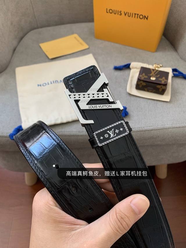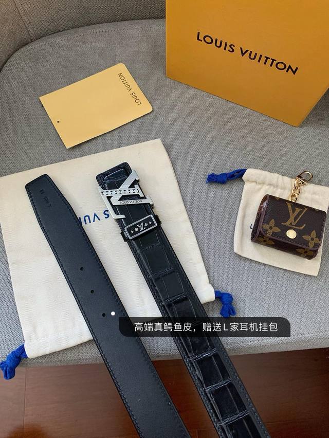 家耳机包,高端正版包装,带身宽3.8Cm ~ 原单品质,精致雕刻工艺,皮带正面采用进口美洲真鳄鱼肚皮,头层小牛皮包边制作工艺,版型高档,杜绝超纤二层皮 , 媲美专柜无压力,佩戴高档大气,高清实拍大图,保质保量