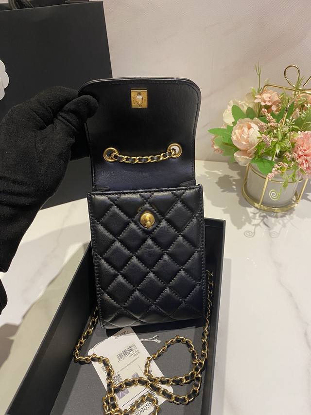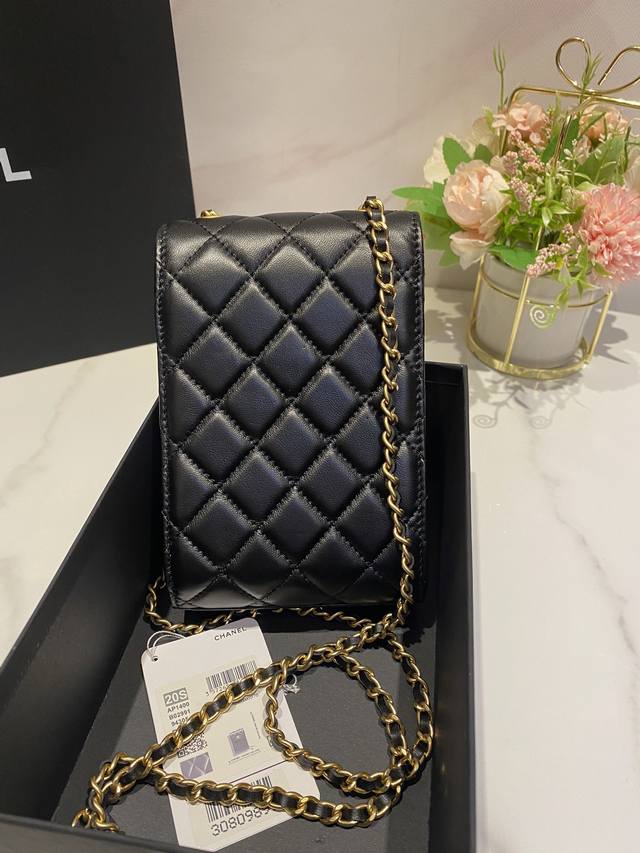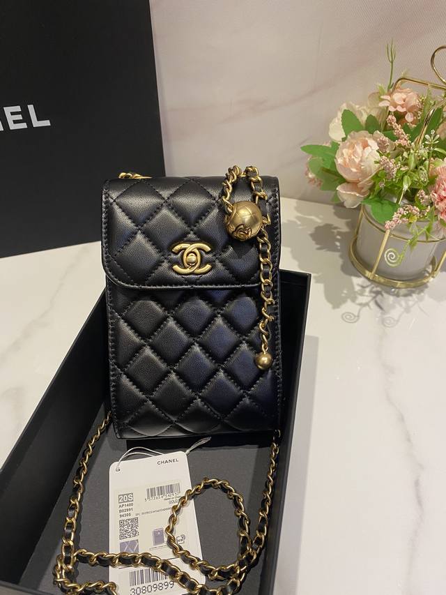Chane1限量版 新款双c 羊皮金珠链条可调 手机包 链条包 A 尺寸:18*12*6