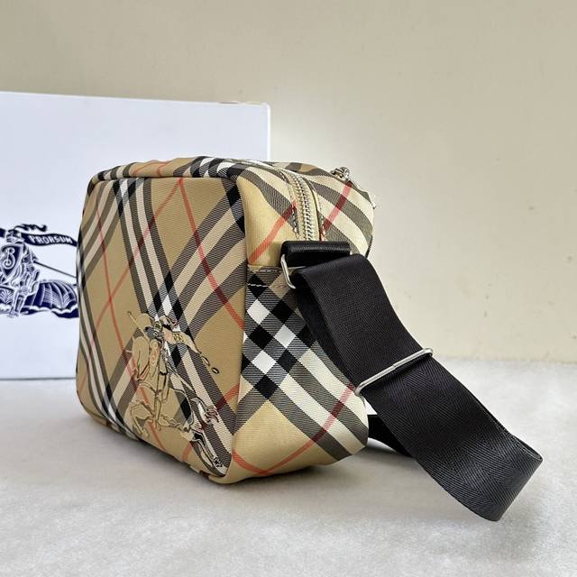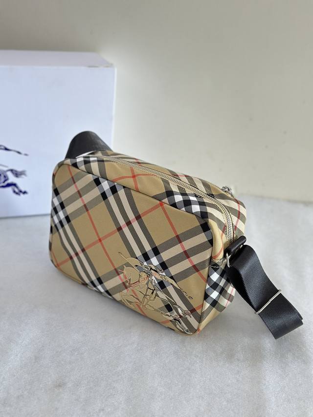 / 顶级原单 沙色格纹斜背包装饰精纺 Bur格纹。点缀马术骑士徽标 Ekd 贴花,采用纯色内衬设计。搭配 B 字型拉链头,设有 1 个外口袋,可容纳各种小物件。来自