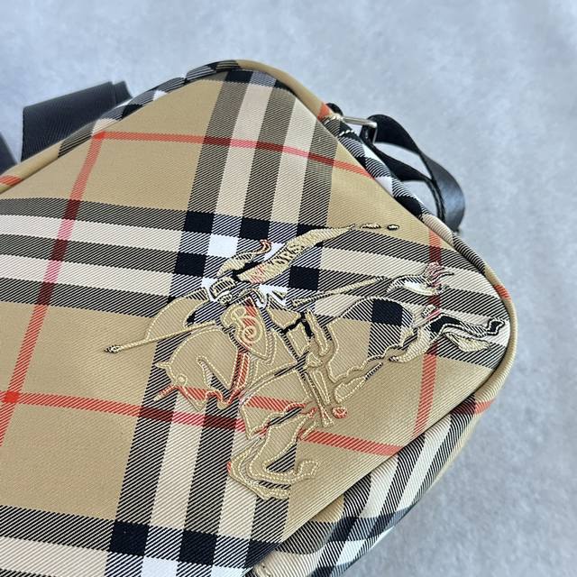 正品级 B家顶级原单 双肩包,装饰精纺 Burberry 格纹。内衬为同种面料,点缀马术骑士徽标 Ekd 贴花。搭配 B 字型拉链头,设有 1...