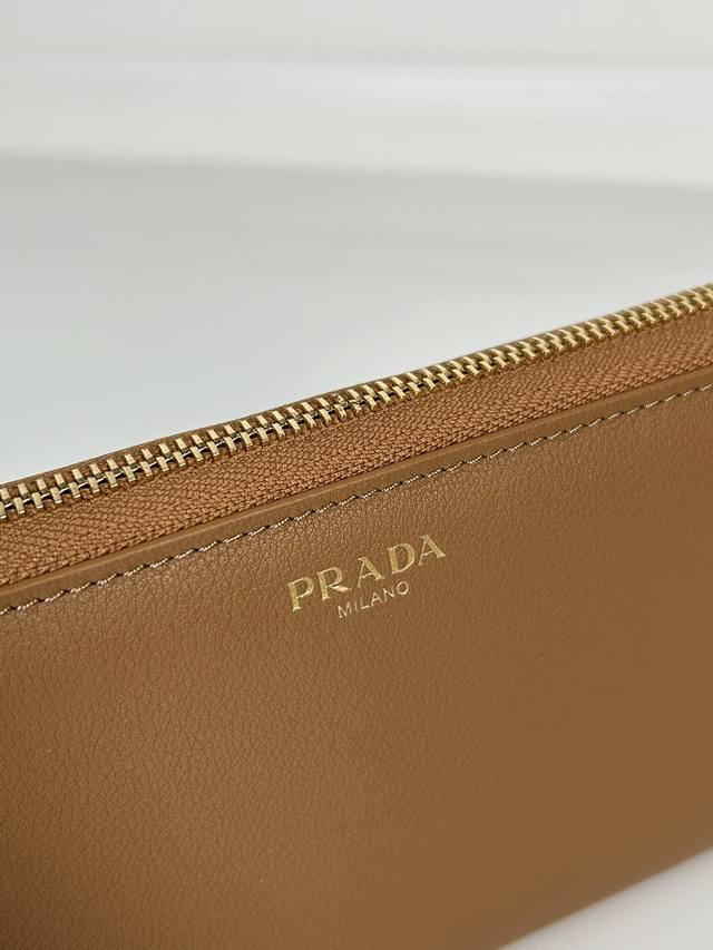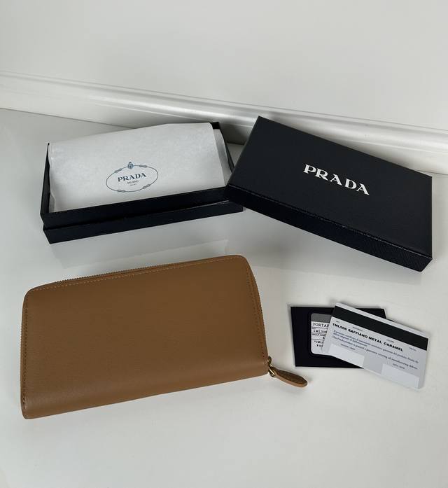 / P家焦糖色细摔纹拉链款皮夹,烫金微标,原单品质,型号1Ml506,12个卡槽,两个票据隔层,内部拉链式零钱包,尺寸20×10.3Cm,实物拍摄,所见即所得..