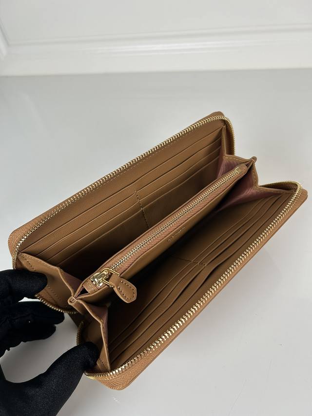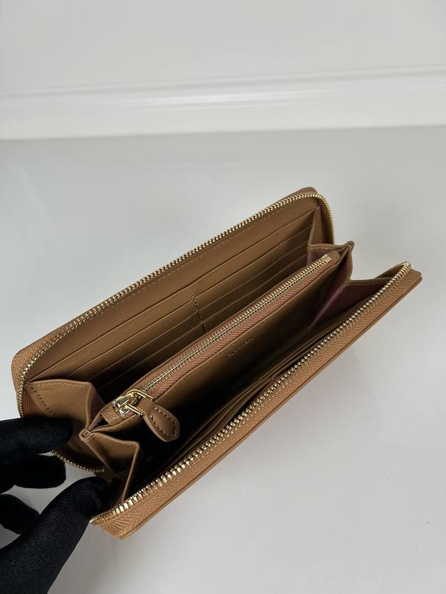 P家焦糖色细摔纹拉链款皮夹,烫金微标,原单品质,型号1Ml506,12个卡槽,两个票据隔层,内部拉链式零钱包,尺寸20×10.3Cm,实物拍摄,所见即所得..