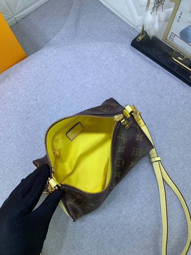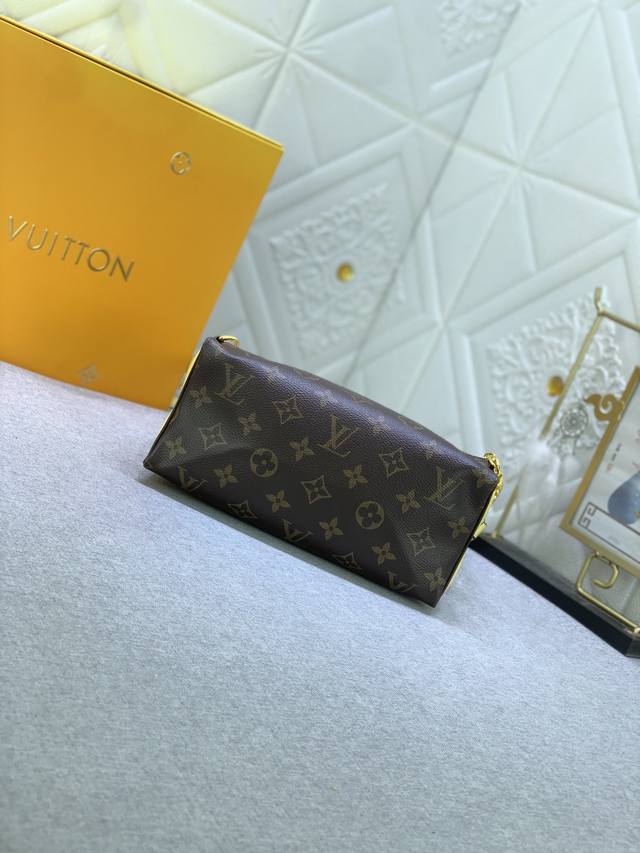 / 升级原版 M11303 M11672 Bloom Pouch 手袋拼接经典 Monogram 帆布和侧面的淡雅皮革,以温婉设计演绎 Monogram 花卉的灵感
