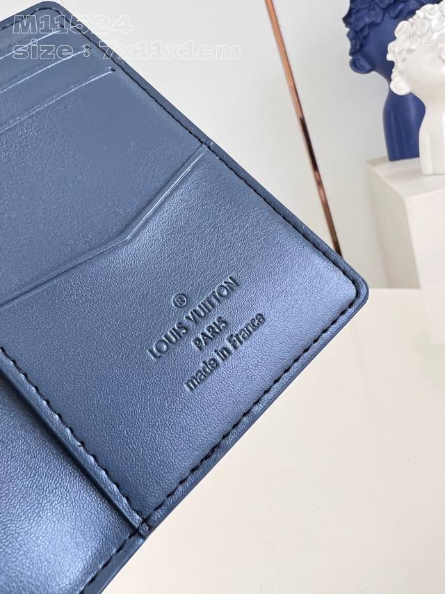 / 独家实拍 M11524蓝 本款口袋钱夹取材 Monogram 压纹粒面 Taurillon 牛皮革,精巧构型可轻松置于多数口袋。齐整内里设有卡片夹层和内袋,可收