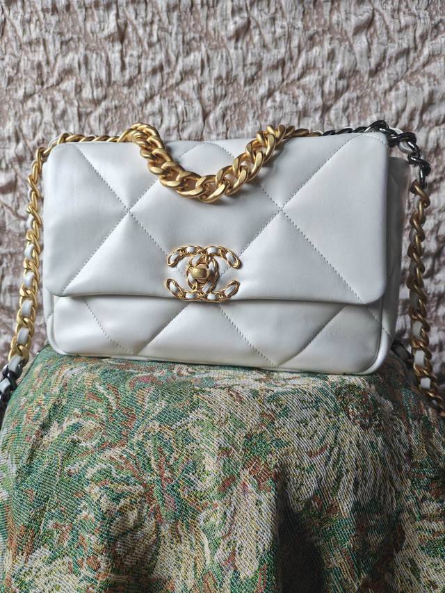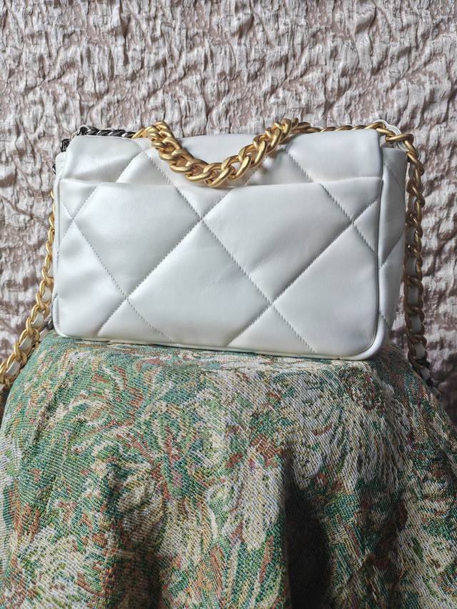 / 实拍 As1160 纯白色19Bag 小号26Cm 百分百原厂山羊皮 有光泽 手感软糯 对版浅色鎏金 市面最贵的五金套件