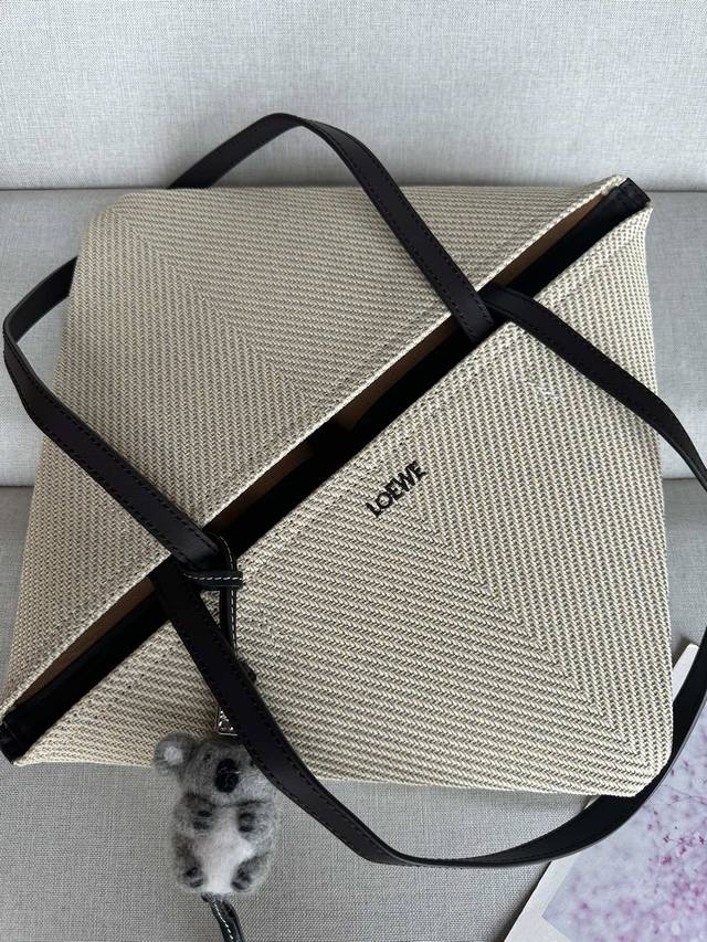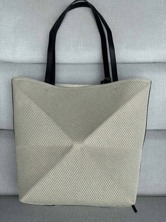 Puzzle Fold 手袋从品牌经典手袋系列的几何线条汲取灵感,以富含几何建筑美感的镶片重新诠释,能完全折叠,可谓旅行良伴。品牌运用创意巧思打造柔软轻盈的手袋,搭配低调雅致的 Loewe 品牌标志。此版本采用棉质提花制成。