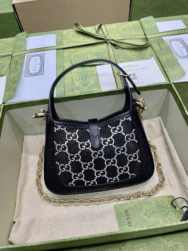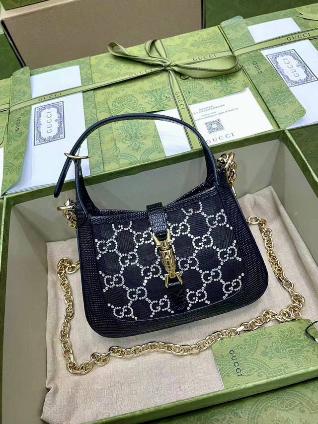 正品级 Jackie 1961爆款钻石配蜥蜴皮!高调时尚! 看见第一秒,就被击中又轻又好装 款号677027 尺寸19X13X3Cm