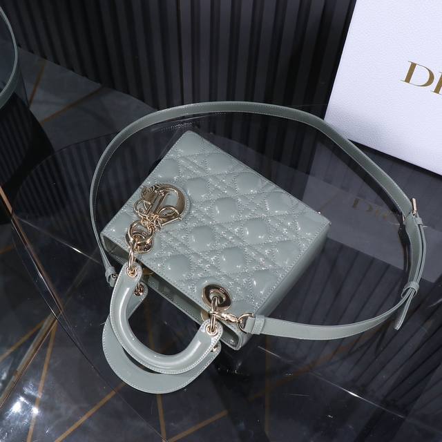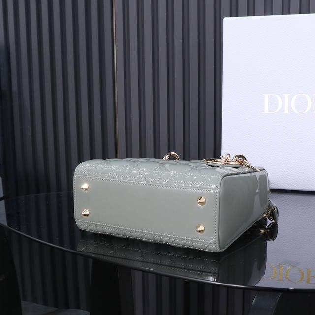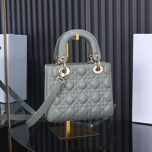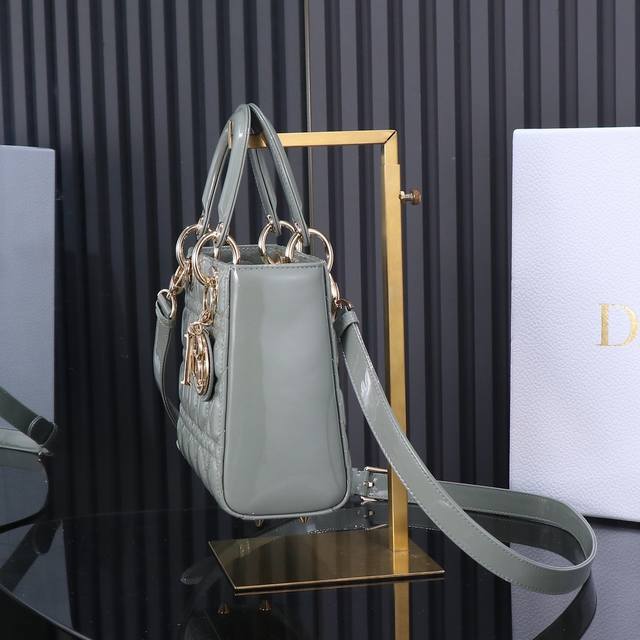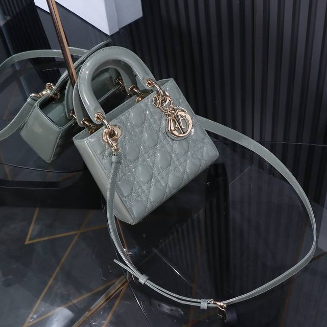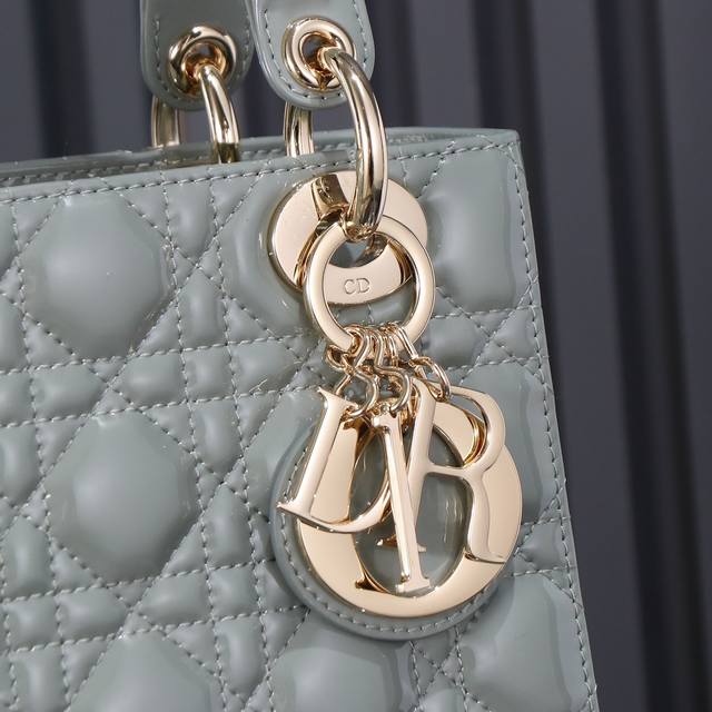 / 原厂皮 Lady Dior 四格岩石灰漆皮,经典款戴妃包手袋集中体现了 Dior 对典雅和美丽的深刻洞见。精心制作,以藤格纹缉面线打造醒目的绗缝细节,高雅经典的