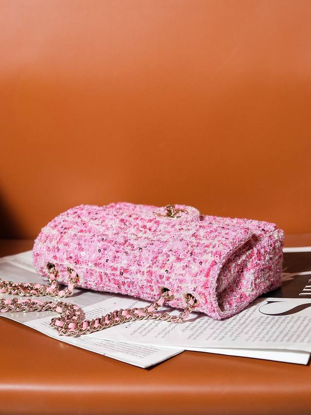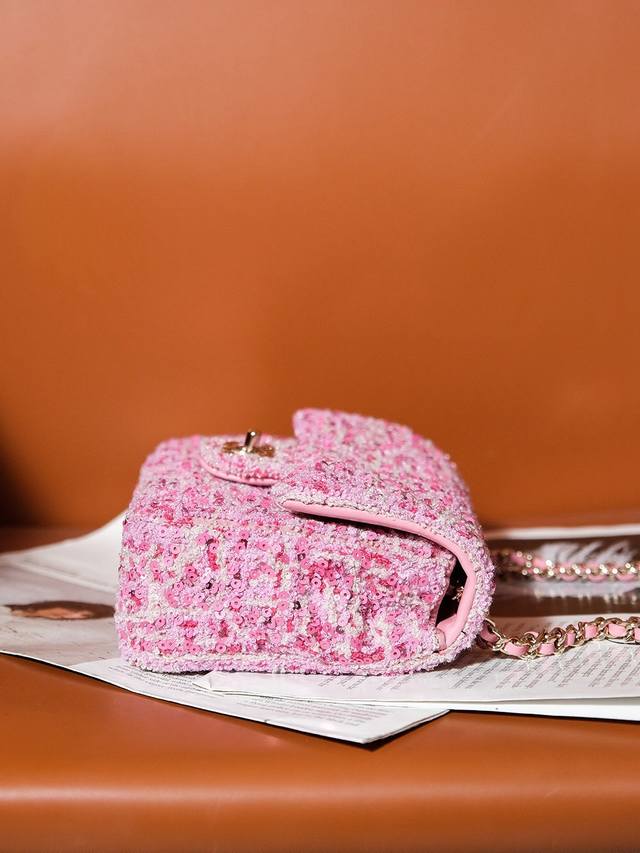 24S新款亮片来了 对比其它款亮片 这一款是毛尼加上亮片 制作难度极大 淡雅的蓝色~活泼的粉色~她们如同梦境中的一抹 亮色~散发着让人愉悦的色彩魅力 无论是柔软的质地 还是精致的链条都超级好看哒~