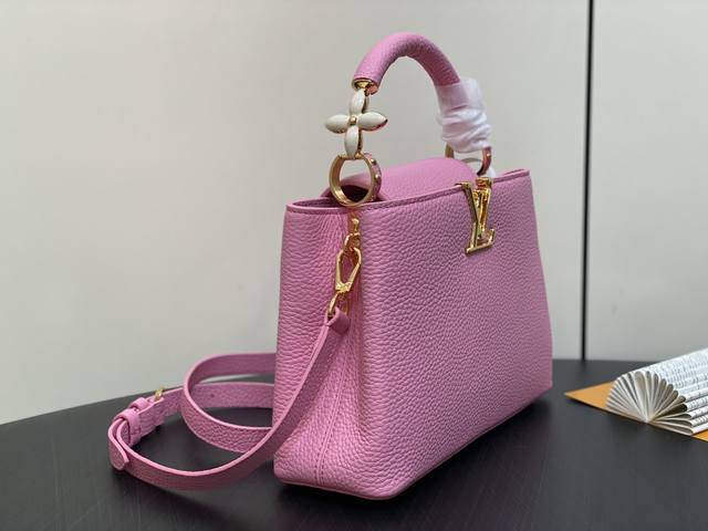 / 出厂价 顶级原单 M23943粉色 全皮cap那英款系列 本款capucines Bb 手袋 于手柄融入精致monogram花卉,以细腻笔触呈现lv标识的立体观