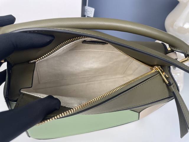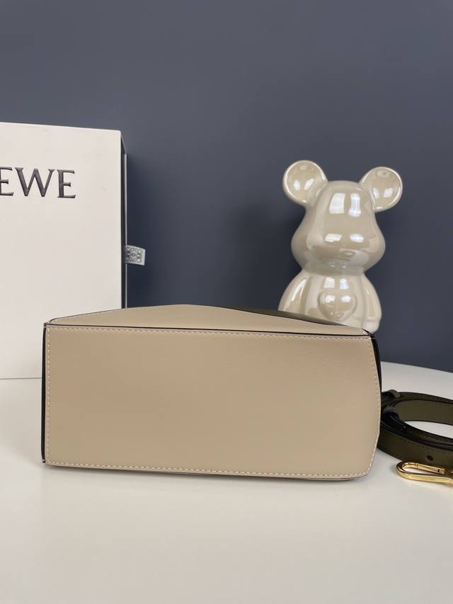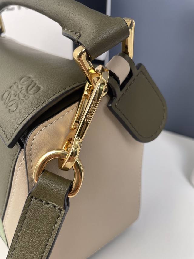 几何包24Cmpuzzle手袋原厂进口小牛皮平纹 罗家爆款几何包puzzle 手袋是创意总监乔纳森 安德森 Jonathan Anderson 为 L0Ewe 推出的首款手提包长方体形状和精确的切割技术创造了 Puzzle 独特的几何线条这个小尺寸版本采用柔软粒面牛皮革制成*小号 Puzzle 可以容纳例如一只大号钱包、所有尺寸的手机和太阳镜斜、肩背、手拿或顶部提手携带*可拆卸
