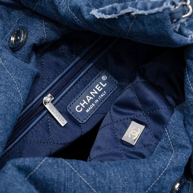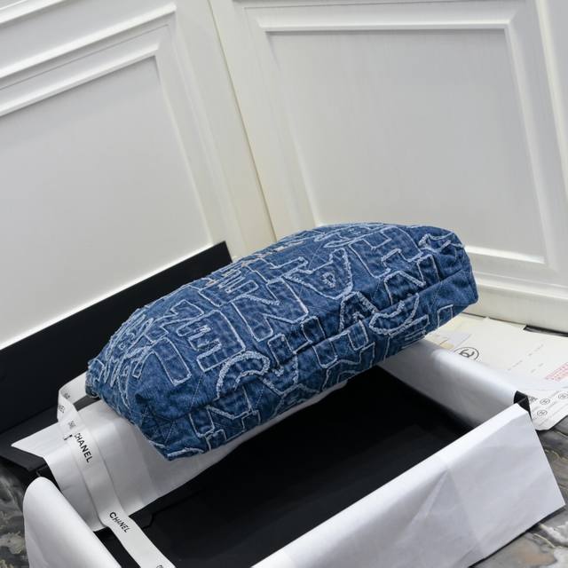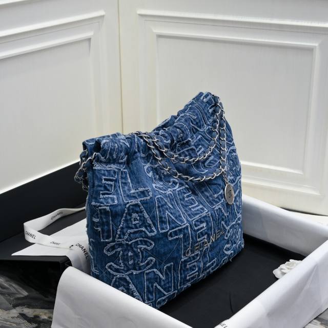 出口产品 质量保证chanel 24A丹宁牛仔!印花刺绣毛边牛仔22Bag仍然是同色系皮穿链,五金全部是银色,和蓝色真的好搭!吸睛又时髦儿~充满了清冷清凉感,字母+毛边的设计真的很独特吸睛,牛仔的面料自重比皮款的轻包包设计延续经典菱格绗缝和皮穿链元素大容量包型将简约与舒适融为一体外观简洁且注重实用功能,内部设有拉链口袋和弹簧钩固定的拆卸小袋包口为磁扣和抽绳式松紧带设计,呈现慵懒而随性的风格,一枚镂空chanel双c吊坠增添点晴之笔、款号:As3261 尺寸:39*42*8Cm