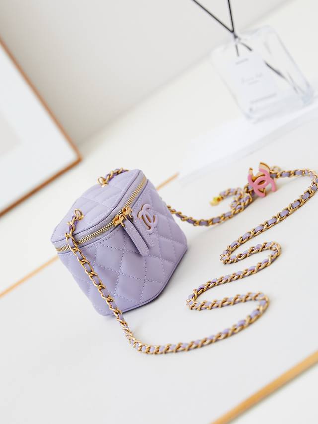 24A 新款化妆包 小巧 真的很精致哦 高颜值的珐琅logo 双c调节扣 是个亮点~越来越爱这个化妆包了随手拎着都很美腻啦 搭配任何衣服都能让你绝绝美