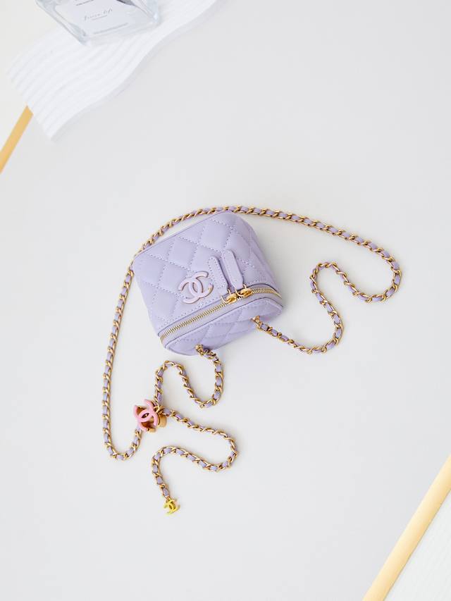 / 24A 新款化妆包 小巧 真的很精致哦 高颜值的珐琅logo 双c调节扣 是个亮点~越来越爱这个化妆包了随手拎着都很美腻啦 搭配任何衣服都能让你绝绝美 款号ap