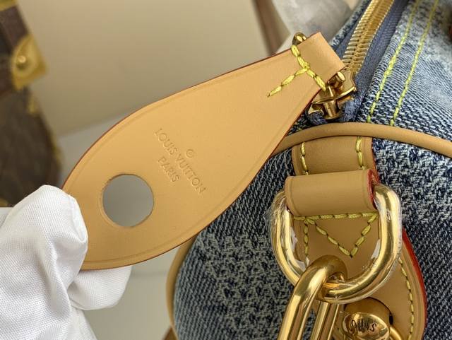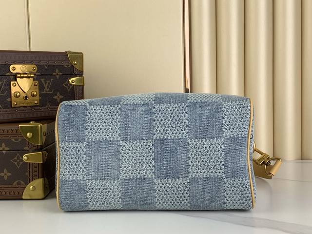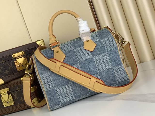 顶级原单复刻独家实拍变动芯片 Speedy 25 手袋 N40700 蓝色 格子牛仔 升级版 全棉高档牛仔 Fw新款牛仔 Speedy 25 手袋无论是斜背,还