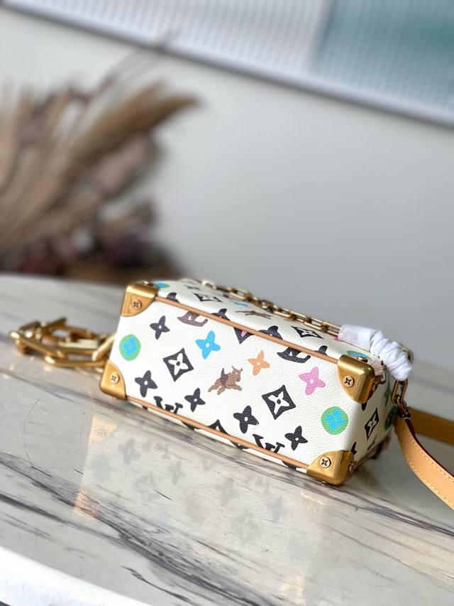 / 钢链 顶级原单 M25132 本款mini Soft Trunk手袋兼具经典底蕴和摩登格调。Monogramcraggy帆布呈现手绘monogram图案,汇聚m