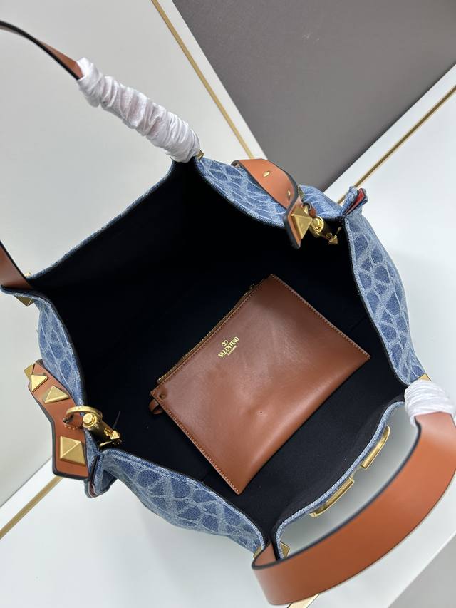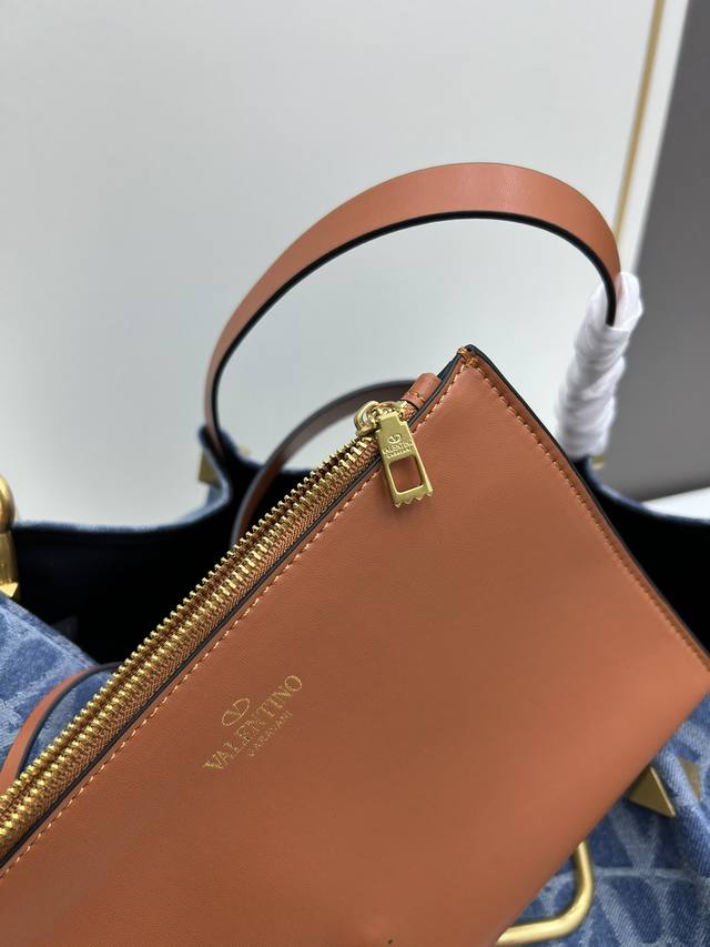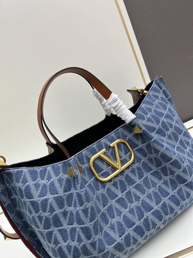 / Valent****春夏托特包系列~ 托特包采用提花牛仔布打造,交织形成的空隙营造出清透质感,点缀棕色皮革手柄、肩带和拉链内袋, 夏日炎炎,是必备的单品~ 尺寸