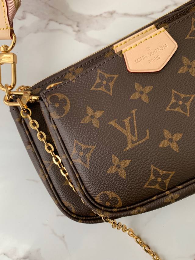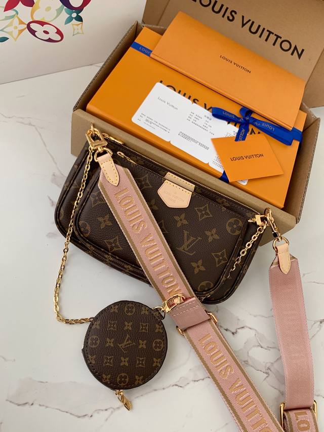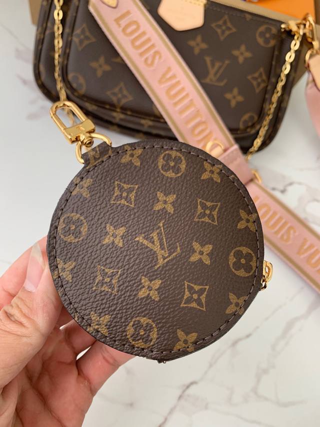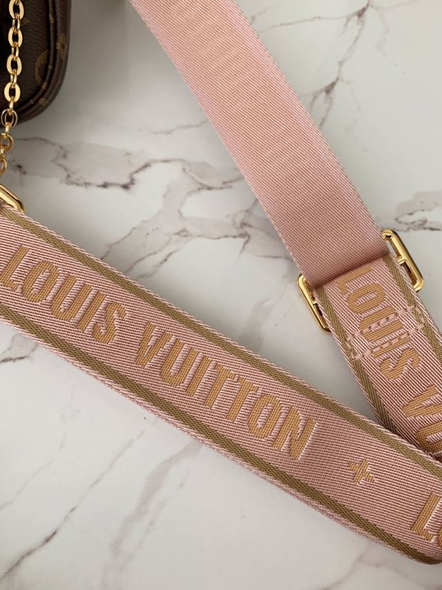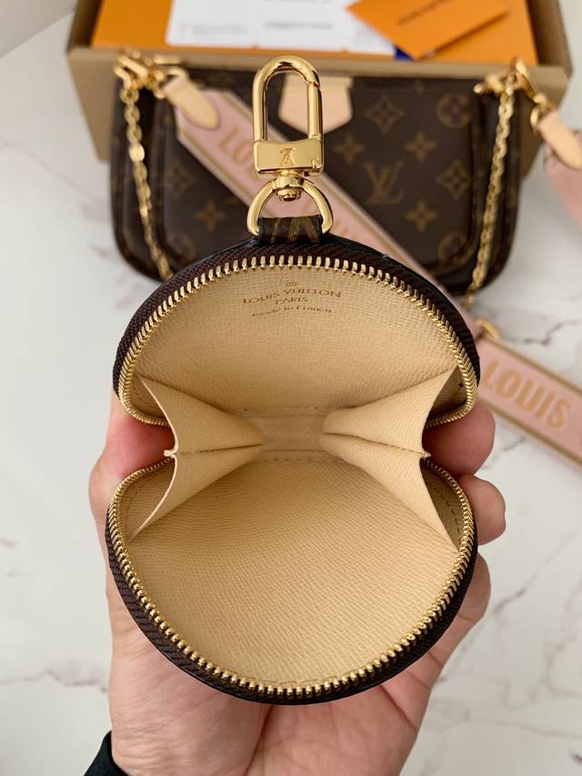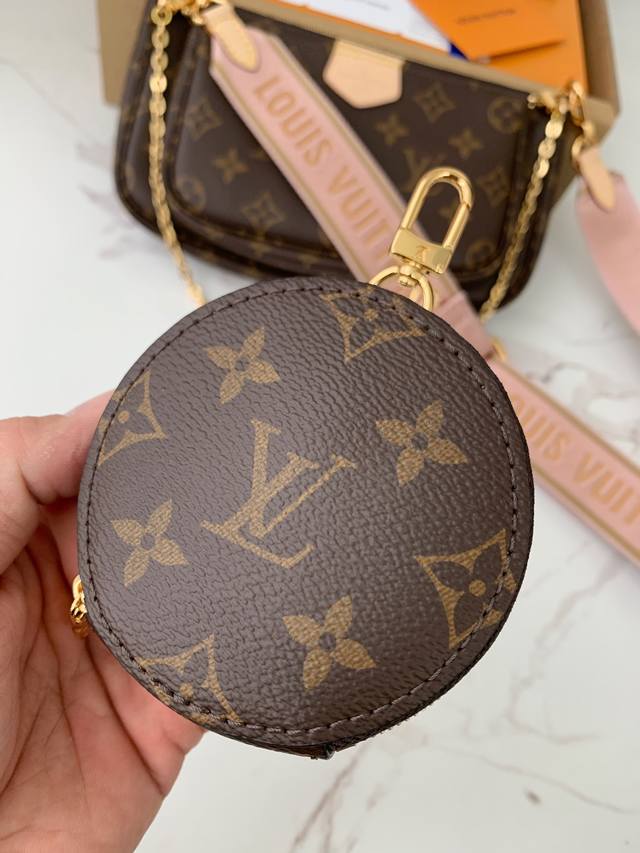 专柜热卖款 特级 Multi Pochette Accessories 粉色五合一麻将包 M44840,老花 皮料 质量细节全新升级!24*13.5*4Cm 批