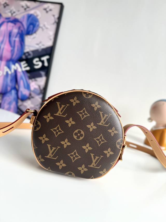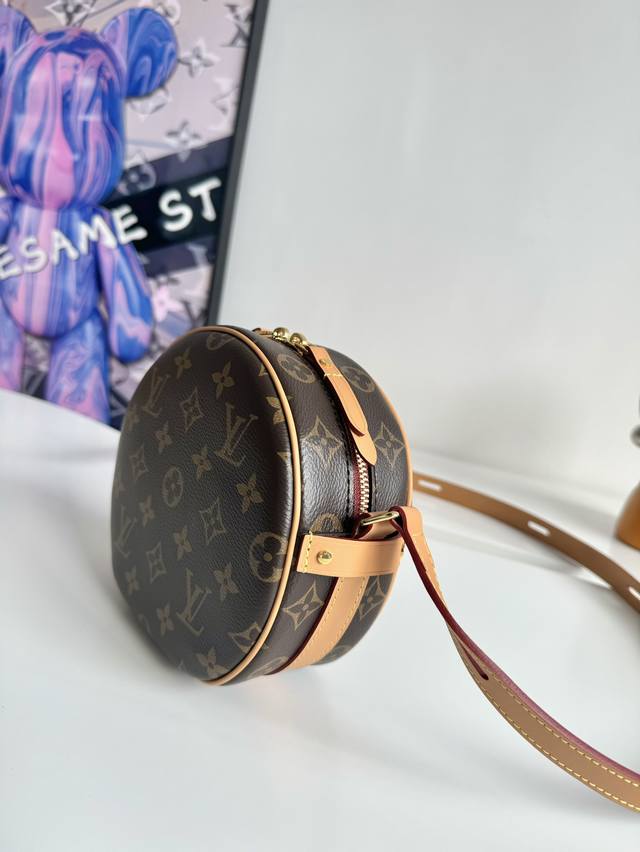 海外原单m45578独家实拍!Nicolas Ghesquière 向路易威登的旅行传承汲取灵感,打造袖珍版 Bote Chapeau Souple 手袋。Monogram 帆布和牛皮革饰边展露典雅气息,轻盈帽盒构型内含充裕空间,令日常所需轻松随行。尺寸:17×18×7Cm