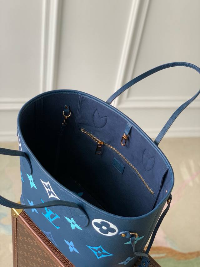 本款 Neverfull 中号手袋以 Monogram Empreinte 皮革传递柔婉韵致,其上点缀渐变色彩大号 Lv 字母与 Monogram 花卉。解开侧面束带,紧凑构型立即化身休闲托特包。可拆卸拉链袋取材 Monogram Empreinte 皮革,适宜收纳贵重物品。31.0 X 28.0 X 14.0 厘米 长 X 高 X 宽