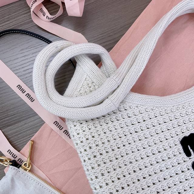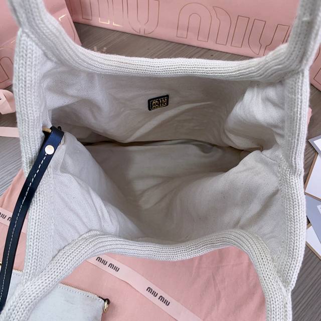 5Bg231,Miu家新款绵线编织托特包,独特的镂空针织纹理设计,内层帆布衬里,搭配可拆卸帆布小包,可做独立小腋下包或手包使用,多种背法,适合各种搭配,大胆创新的设计完美诠释了 Miu不拘一格,潇洒随性,今年超爆款式,包身非常轻巧,气质随性慵懒,容量超大,上班通勤,外出游玩都是绝佳选择,尺寸35 X 40Cm,配原版包装