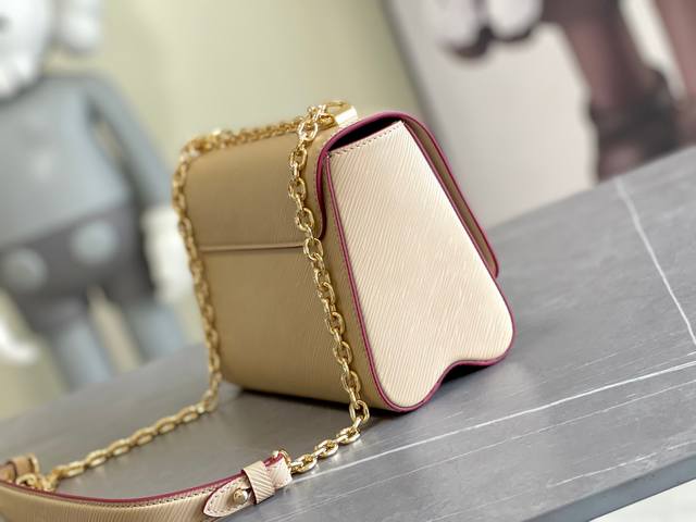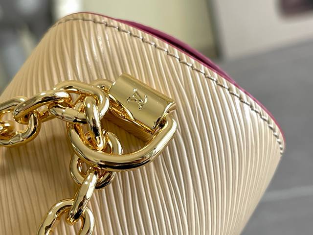 M59686焦糖m53754象灰色m54804黑色m53090墨蓝色m59761米色m20627浅蓝m20802裸粉色m21111白色 M50280Twist 中号链条包于 2015 度假系列宣告新古典主义风尚。取材品牌标志性 Epi 皮革,点缀宛如雕塑般的 Lv Twist 扭锁,释放金属的耀目光泽。巧妙的波浪形包底暗藏容量玄机;滑链肩带折叠或展开,实现肩背或斜挎体验,以唯美气质出席昼夜场合23.0 X 17.0 X 9.5 厘米 长 X 高 X 宽 23.0 X 17.0 X 9.5 厘米 长 X 高