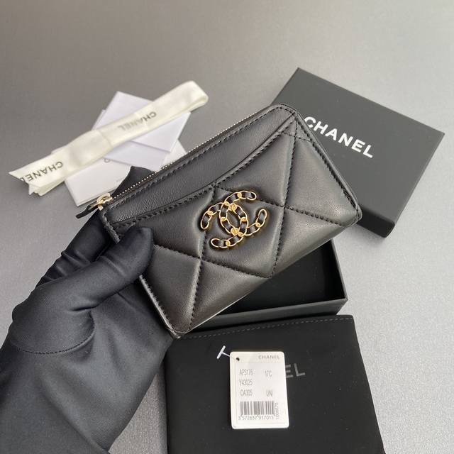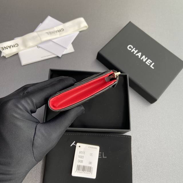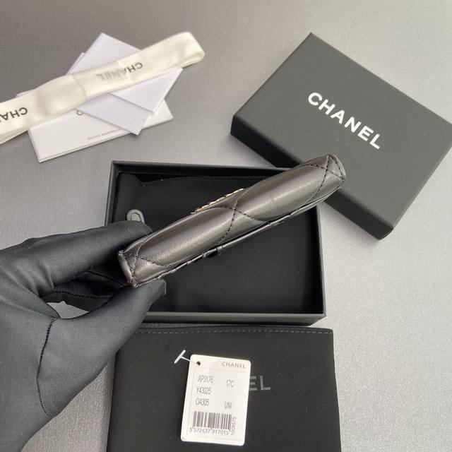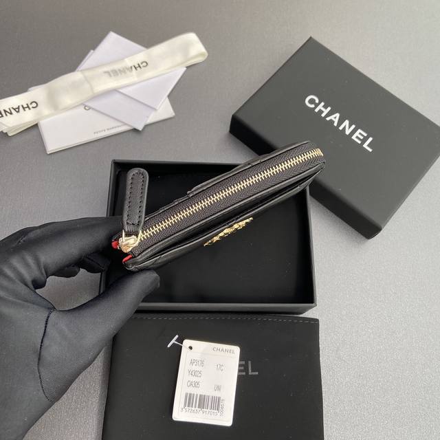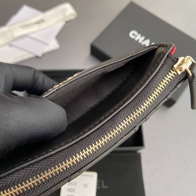 原厂皮 特级五金原厂皮 小香小拉链包卡包系列 絎縫卡包配以標志性金屬標志 金色調金屬五金,专用意大利进口皮 6個卡糟,1个小拉链袋 编号:3176 黑羊鎏金 尺