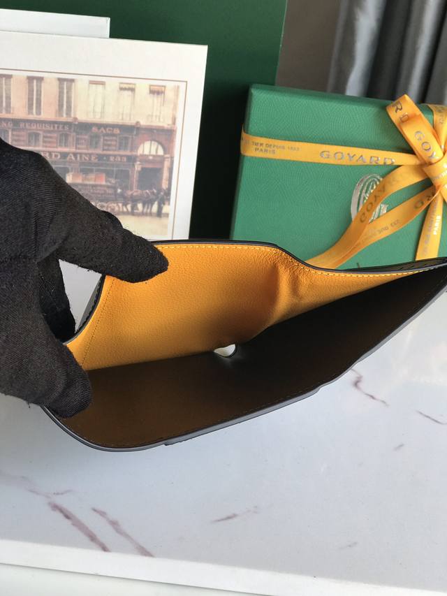 Saint-Gabriel 是由goyardine 帆布配头层小牛皮精心制作而成的独特的信封状三折钱包,采用轻巧紧凑的形式,具备大型钱包的所有功能:6个卡槽,2个口袋和纸币夹,方便归纳存取,包身轻便小巧,可轻松随包携带。