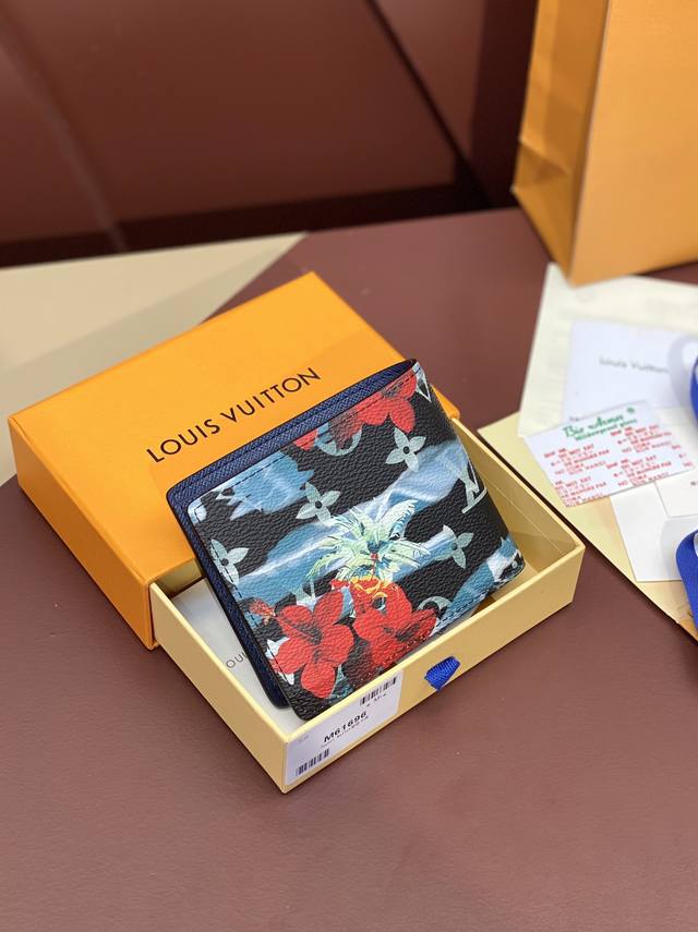 / 出厂价 M61695 滑板 宝蓝色!本款slender钱夹取材 Monogram Surfin’ 涂层帆布,以热带元素和品牌经典标识交叠缤纷图案,为标志性单品注