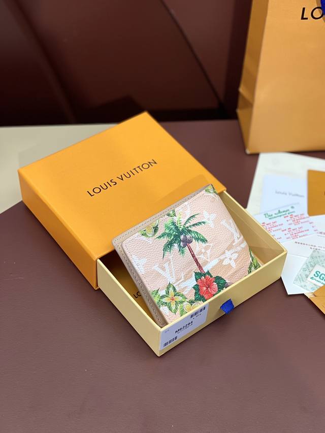 / 出厂价 M61695 滑板 卡其色!本款slender钱夹取材 Monogram Surfin’ 涂层帆布,以热带元素和品牌经典标识交叠缤纷图案,为标志性单品注