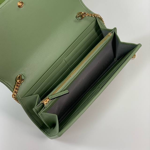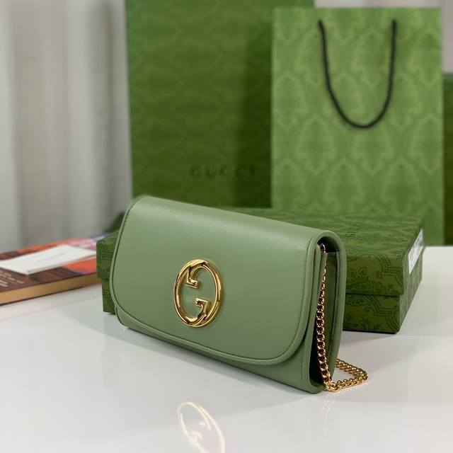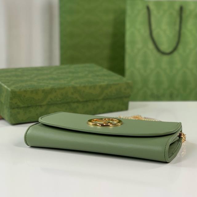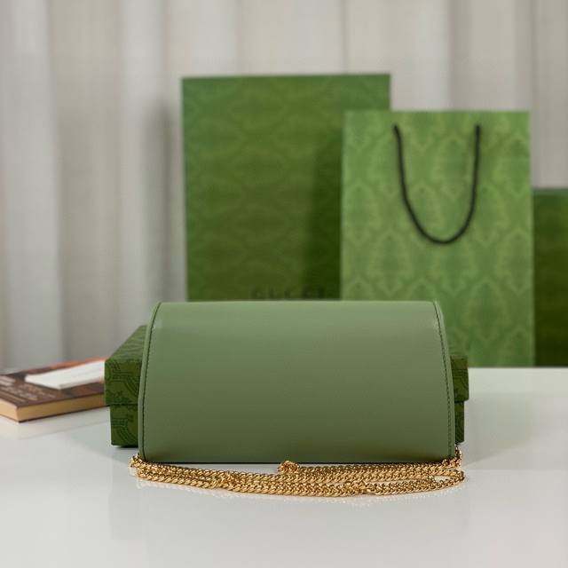 盒子包装 全新gg Blondie系列链条小包,原厂绿色皮革搭配金色调配件,款号725215绿皮,尺寸21X10.5~