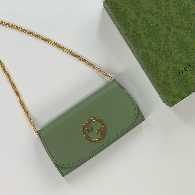 / 原厂皮 盒子包装 全新gg Blondie系列链条小包,原厂绿色皮革搭配金色调配件,款号725215绿皮,尺寸21X10.5~