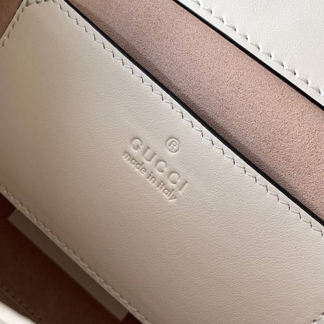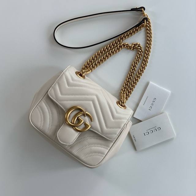 / 原厂皮 全新gg Marmont系列绗缝迷你肩背包,白色绗缝v型皮革搭配古金色双g,链带拼接皮肩带,款号739682白皮,尺寸18X15X8~