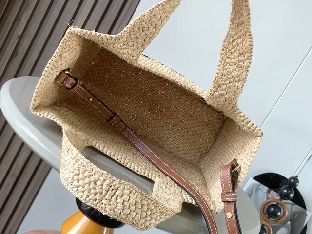 小号酒椰纤维loewe Font Tote 手袋loewe Font Tote 是一款长方体手袋,完全由酒椰纤维编织而成饰有对比色 Loewe 标志 图片尺寸小号版本。*手提或肩背*可拆卸可调节肩带*无衬里