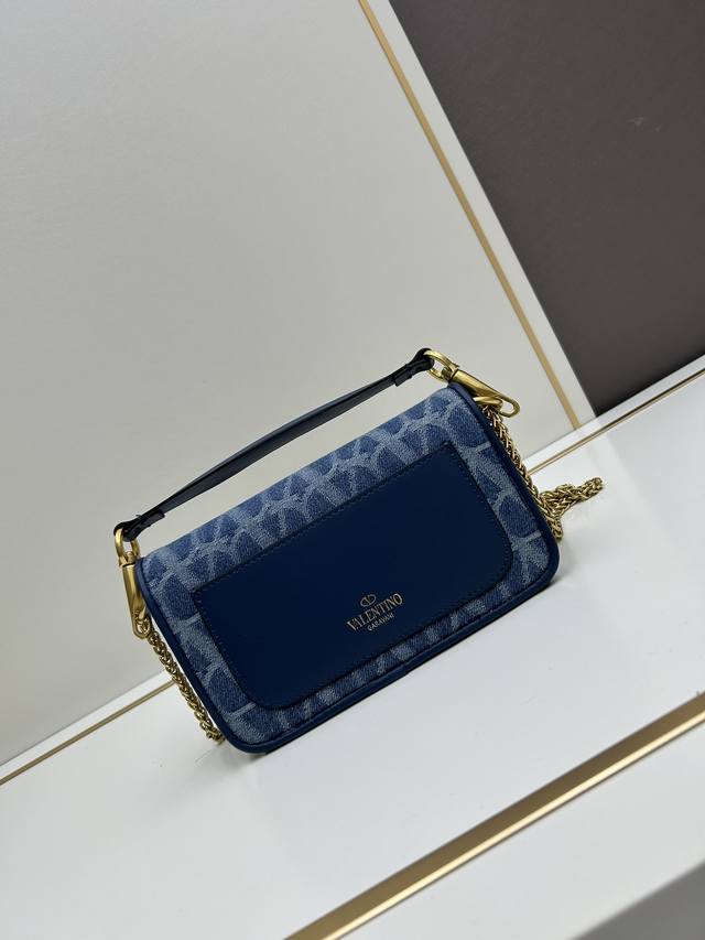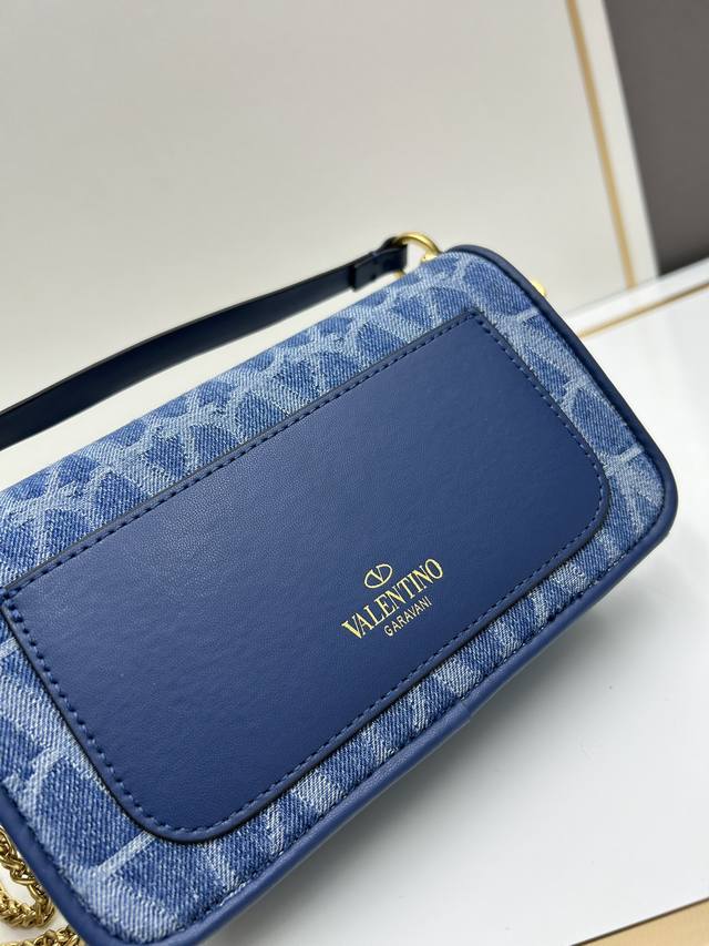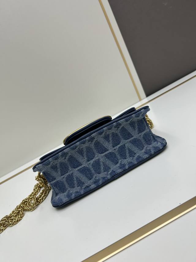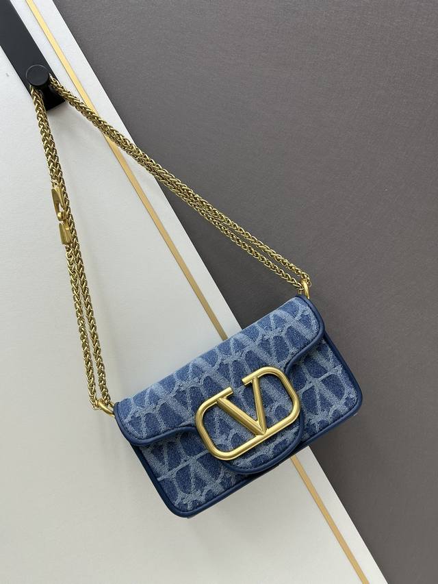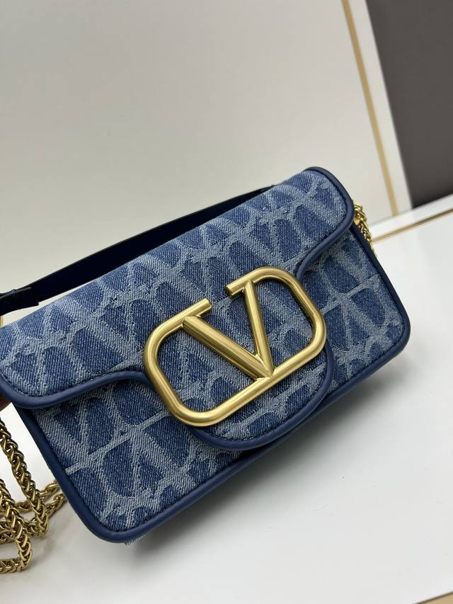 Valentino Garavani Alltime牛仔面料,8116#饰有金属vlogo Signature细节。得益于可拆卸提手和皮革肩带,这款包既可肩背斜