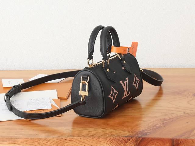 变码芯片版顶级原单、加强版nano Speedy 手袋以袖珍尺寸浓缩路易威登 Speedy 手袋的经典构型,为 Monogram Empreinte 软粒面皮革渲染双重色调,烘托 Monogram 压纹。采用拉链开合设计,巧用手柄和可拆卸并调节的肩带,探索多种造型可能。