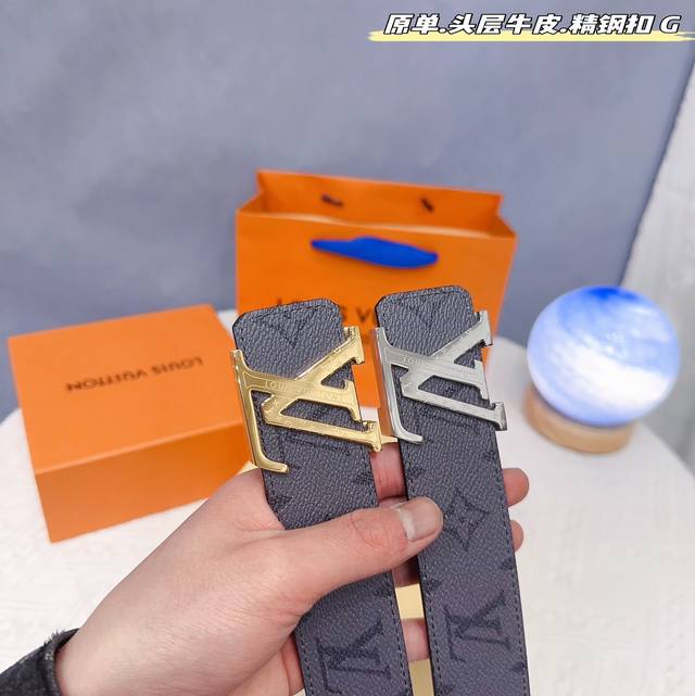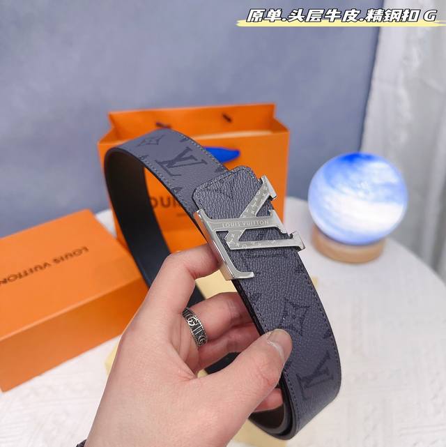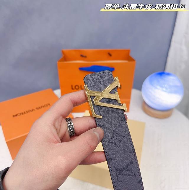 路易l驴家 寬度3.8Cm 為原廠头层牛皮 風格效果 底為柔軟的黑色头层牛皮 經典字母精钢扣头效果 手感極佳 从买原版到开发历经数月打造而出 选料 做工细节 媲美z
