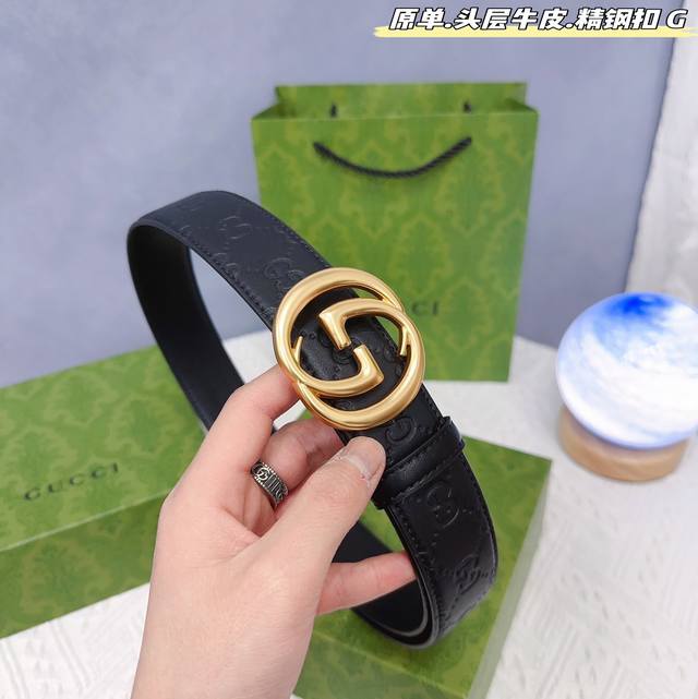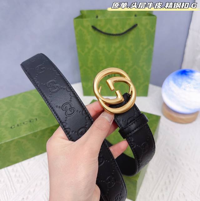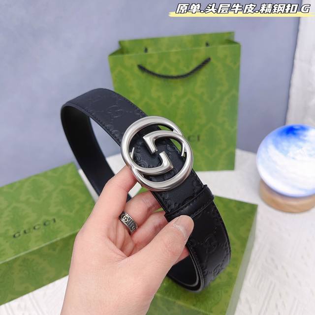 Gucc古奇g家 原单新品 带身采用雙面意大利進口原廠牛皮纹 非市场普通版本 黑色经典配色 百搭适合各种场合 扣头精品设计注意细节 宽度3.8Cm