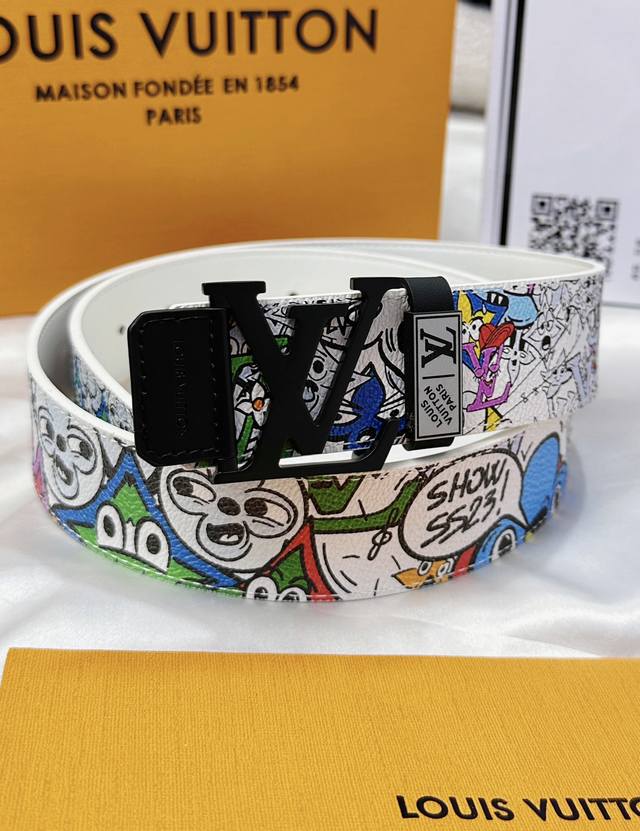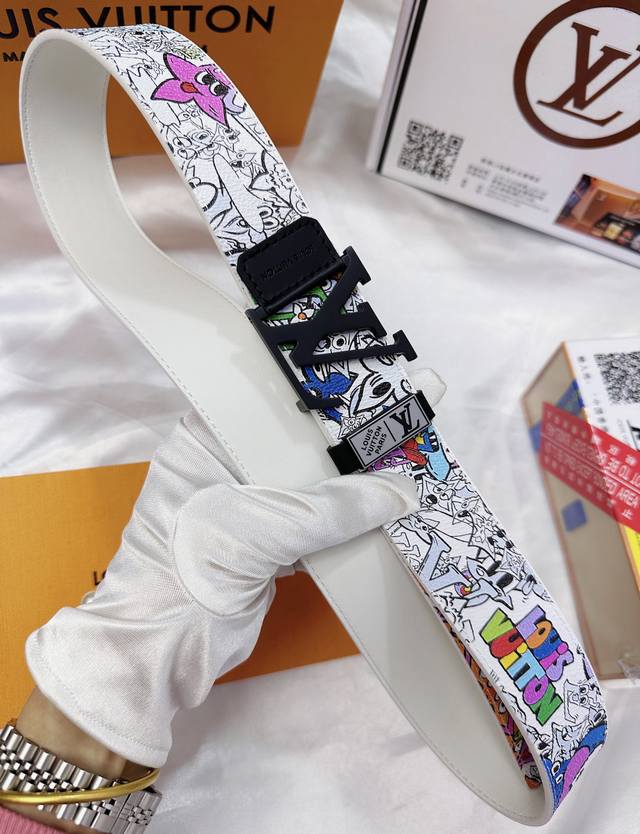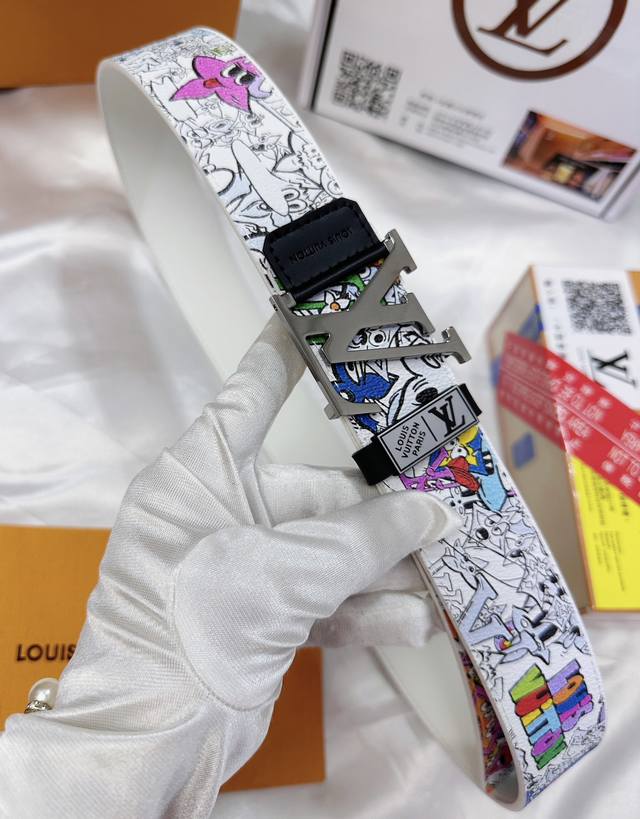腰带:原单品质百分百头层牛皮,保证真皮。镜面贴皮logo设计.真空电镀.永不掉色.24K纯钢扣手绘涂鸦图案艺术双面可用专柜同等质量, 送人自用首选